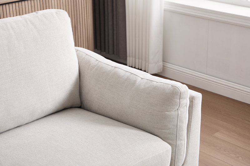 Ya sea que esté diseñando un espacio fresco y contemporáneo o creando un ambiente de casa de campo moderno cálido y acogedor, no puede negarlo. Este sofá de 2 cuerpos hace que quedarse en casa por la noche sea tan atractivo. Este sofá de diseño, que se atreve a ser diferente, cautiva con los brazos de riel redondeados colocados en ángulo para un estilo vanguardista. La tela similar al lino de tejido plano en un tono neutro fresco seguramente animará su espacio. Los cojines de asiento reversibles le dan a este sofá mucho más poder de permanencia.